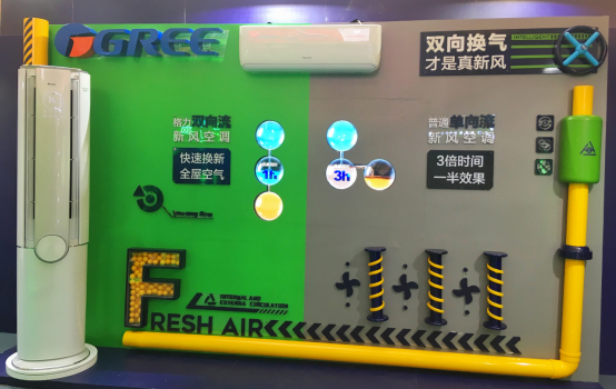 “格力空氣G密所”展示的格力雙向流新風(fēng)換氣技術(shù)則創(chuàng)新突破了行業(yè)技術(shù)瓶頸——它可以模擬人體呼吸方式,主動(dòng)“呼”出室內(nèi)多余的CO2和含有甲醛的污濁空氣,同時(shí)“吸”入室外新風(fēng),通過(guò)“呼”與“吸”雙向渠道完成室內(nèi)空氣換新,打造清新呼吸環(huán)境。此外,格力新風(fēng)空調(diào)還內(nèi)置了HEPA過(guò)濾網(wǎng),可以有效過(guò)濾掉室外新風(fēng)中的PM2.5等顆粒污染物,進(jìn)一步保證呼吸健康。